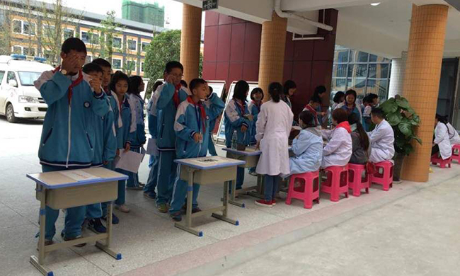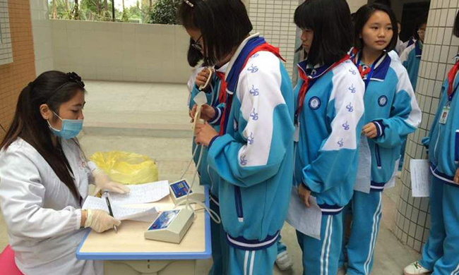 斑竹园卫生院对学生进行体检
